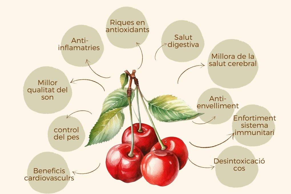 Les cireres són molt més que una fruita deliciosa; són una font rica de nutrients amb múltiples beneficis per a la salut. Incorporar-les a la teva dieta pot ajudar-te a millorar el teu benestar general, a prevenir diverses malalties i a gaudir d’una millor qualitat de vida.